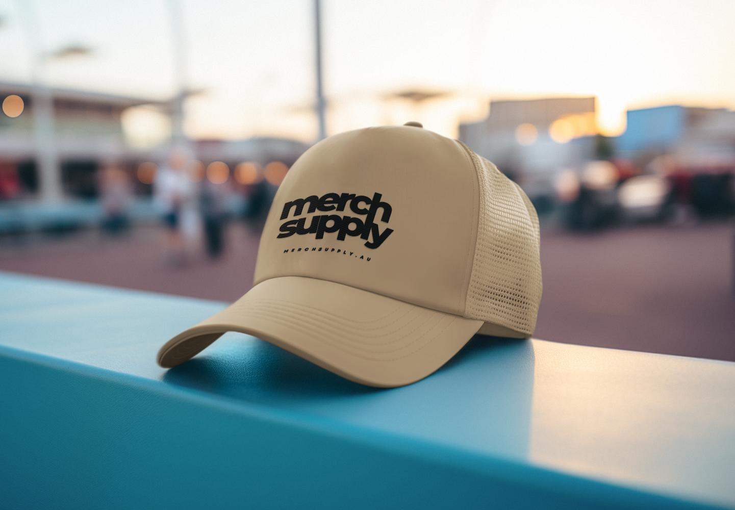 full colour printing on front of caps (MAX PRINT PARAMETER 100mm width X 60MM height). require your logo/design in a scalable format (eps or ai).